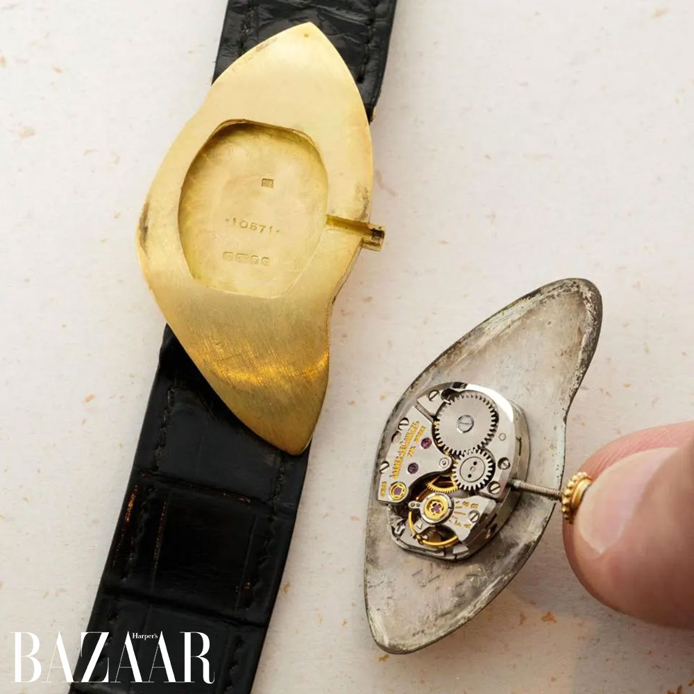 Tháo rời mặt số để xem bộ máy đồng hồ bên trong mẫu Cartier Crash năm 1967. Nguồn: Loupe This