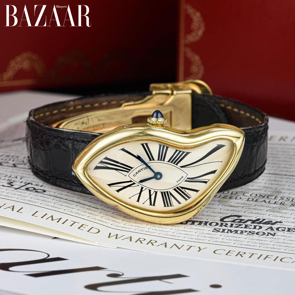 Cartier Crash phiên bản giới hạn bằng vàng 18K và dây đeo da năm 1991. Nguồn: FORTUNA Fine Jewelry and Watch Auction.